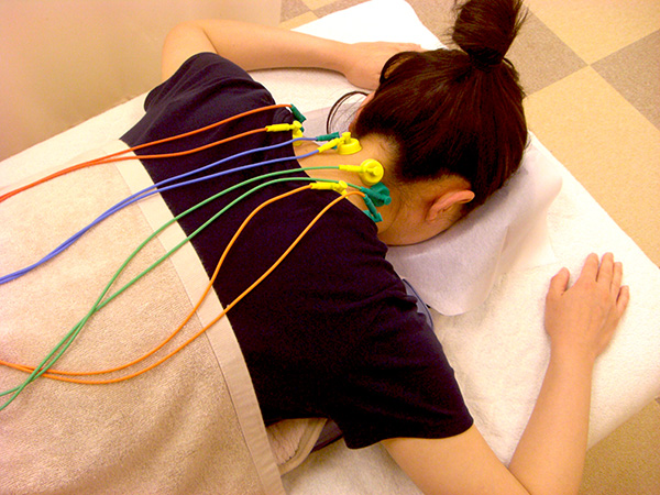 一定のリズムで断続する電流を人体に流し、筋肉を電気刺激で揉みほぐす治療です。患部の硬くなった筋肉が柔らかくなり、血流が促進されるので、痛みを起こしている発痛物質を流し出すことができます。筋肉痛、神経痛、疲労回復等に効果的です。
